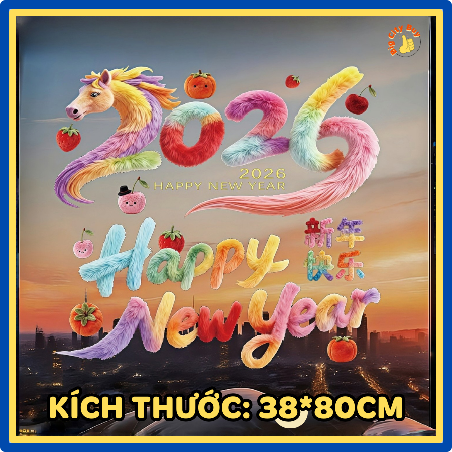 🎨 Thiết kế: Hình ngựa năm Ngọ, số 2026, chữ chúc mừng năm mới, màu sắc rực rỡ bắt sáng