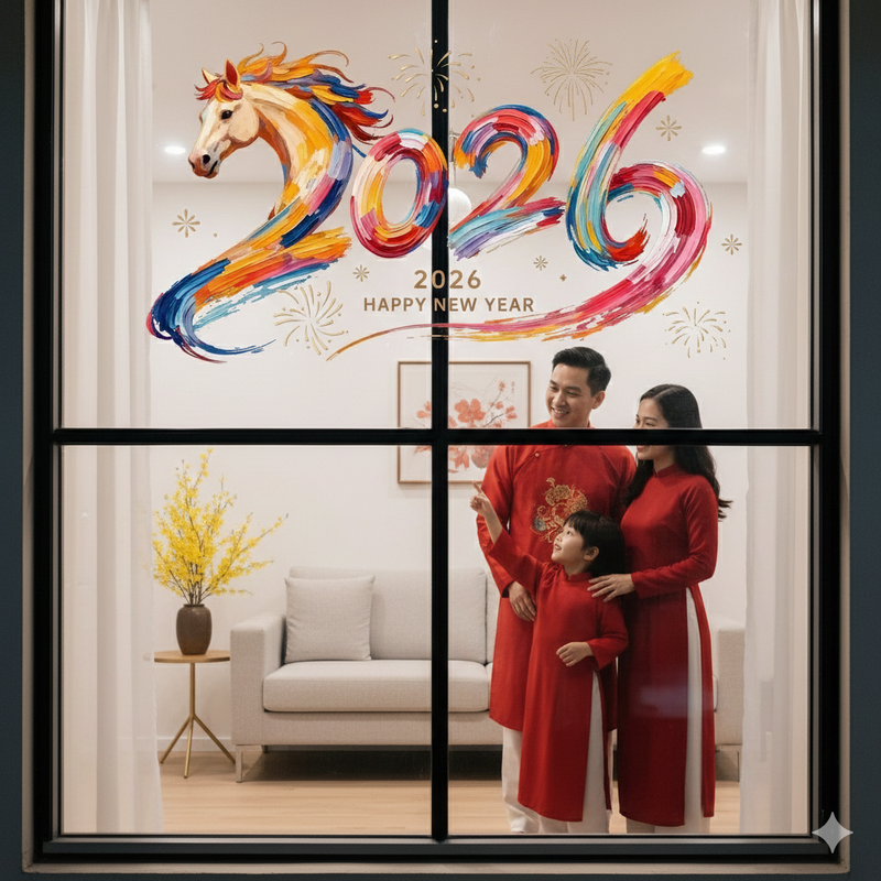 Chỉ cần dán lên cửa kính là không gian sáng rực không khí Tết 2026, trang trí nhanh gọn, không keo, không hỏng kính.