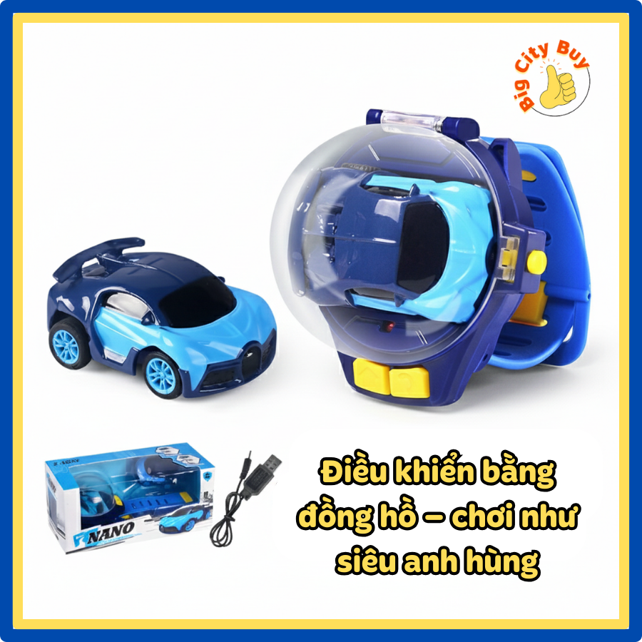 Đồng Hồ Điều Khiển Xe Mini 2.4G Hợp Kim – món đồ chơi công nghệ hot trend giúp bé điều khiển siêu xe ngay trên cổ tay, thao tác nhanh – nhạy – cực ngầu như siêu anh hùng, kích thích trí tưởng tượng và khả năng phản xạ của trẻ.