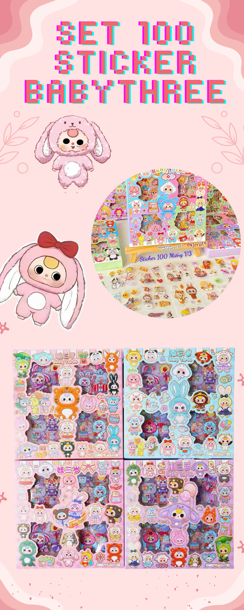 Hôp 100 sticker Kuromi chống nước