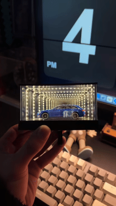 Vừa treo chìa khóa, vừa trưng bày Hot Wheels cực đẹp. Không chỉ là móc chìa khóa, đây là hộp trưng bày mini giúp bạn khoe chiếc Hot Wheels yêu thích ngay lối vào nhà. Hiệu ứng LED vô cực siêu ấn tượng. Đèn LED tạo chiều sâu “vô cực”, khiến mô hình xe nổi bật hơn hẳn — biến góc tường thành điểm nhấn sang – độc – lạ. Ngăn nắp, tiện dụng, không còn lo thất lạc chìa. Chìa khóa có chỗ để cố định, treo ngay cửa ra vào — tối lấy chìa chỉ cần bật LED, nhìn rõ ngay. Phụ kiện decor hoàn hảo cho người mê xe. Một món đồ nhỏ nhưng nâng cấp toàn bộ không gian; cực hợp làm quà tặng cho người sưu tầm Hot Wheels hoặc thích thiết kế hiện đại.