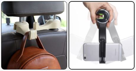 Mọi thứ sẽ được giải quyết một cách gọn gàng. Thiết kế thông minh là 1 chiếc móc treo đồ ghế sau ô tô kiêm giá đỡ điện thoại loại cao cấp.