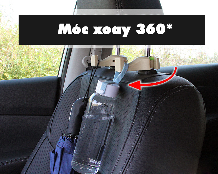 "Thiết kế giá đỡ xoay 360 ° giúp điều chỉnh trước sau tiện lợi giúp treo đồ cả trước và sau. Sau khi sử dụng cà thể quay vào cất gọn không gây ảnh hưởng đến không gian ngồi